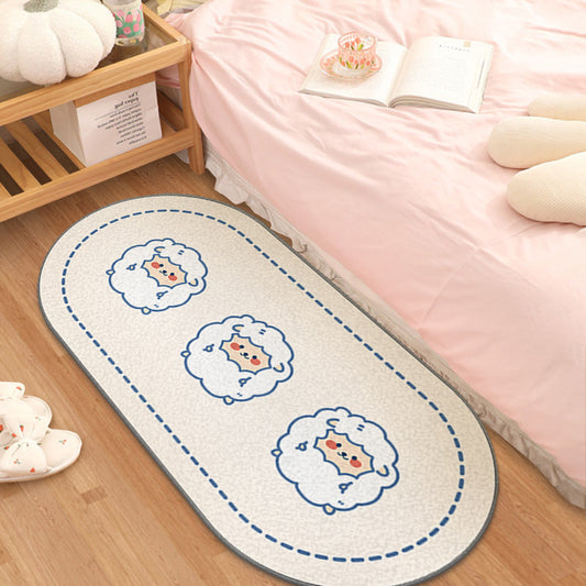 Cute Oval Animal Print Bedside Carpet for Childrens Room