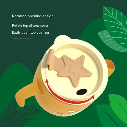 Cartoon Dinosaur & Star Double Handle Cups with Straw Lid
